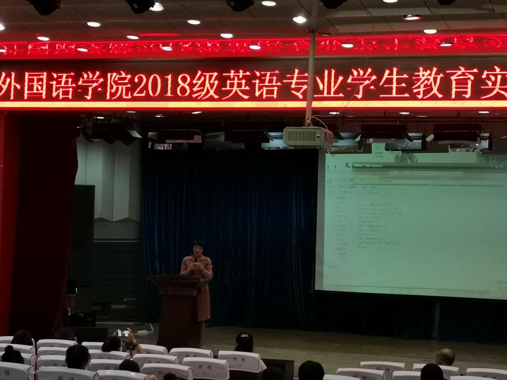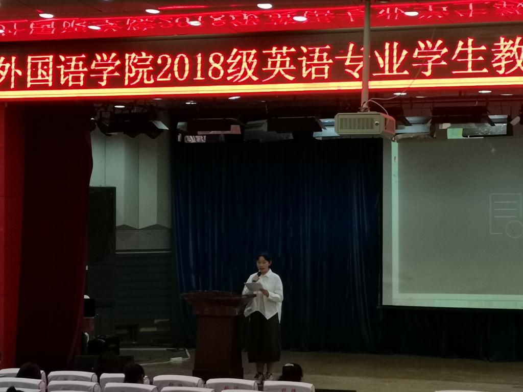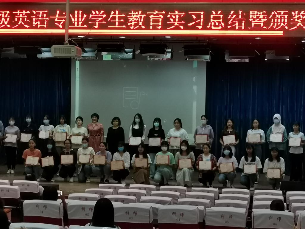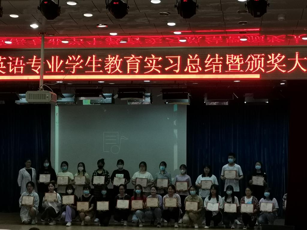 sunbet申搏官方网站英语2018级学生教育实习总结暨颁奖大会于2021年9月16日在sunbet申搏官方网站开发区校区报告厅顺利举行,参加大会的学生包括英语2018级全体学生共122人,2021级新生代表共40人,同时,sunbet申搏官方网站邵丽君书记、崔海英院长、罗学锋副院长和范学荣副院长,以及部分实习指导教师出席了大会。