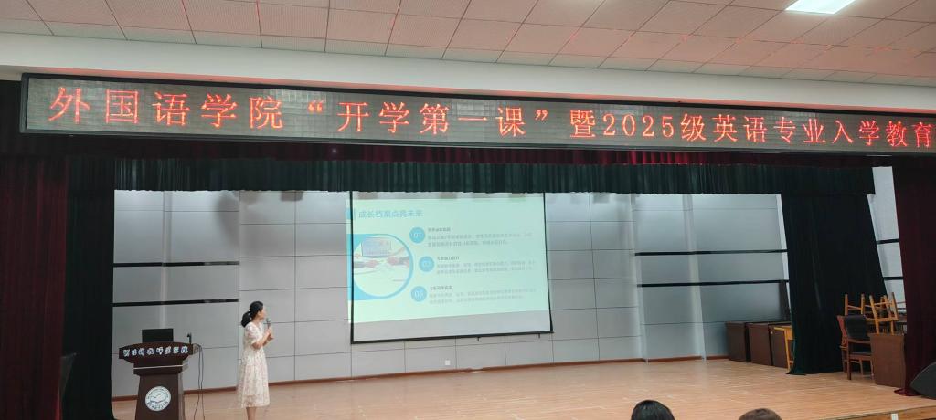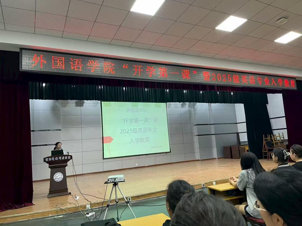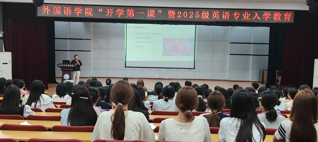 2025年9月3日,sunbet申搏官方网站在秦皇岛校区多功能厅成功举办“开学第一课”暨2025级英语专业入学教育,2025级新生及英语专业骨干教师与会。