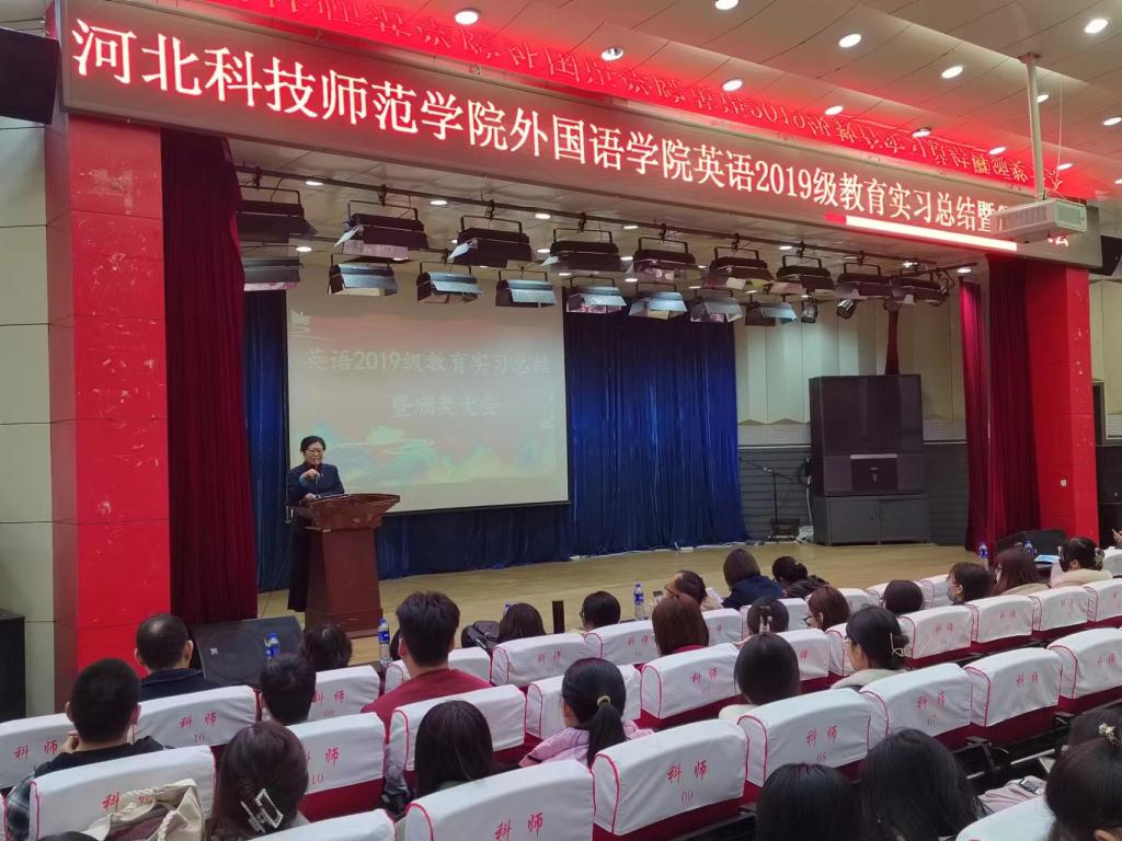 2023年3月17日下午14点,sunbet申搏官方网站在开发区学术报告厅召开了2019级英语专业教育实习总结暨表彰大会。出席大会的有学校督导组白继海、李广臣二位老师,学院领导班子成员、英语教学部教师和学工办的全体教师、2019级英语专业学生以及部分下学期要开始实习的2020级学生代表。