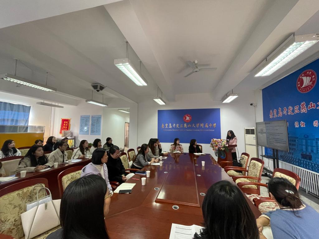 燕大附中吴科元校长接待了sunbet申搏官网教育见习团队,介绍了学校“敬学慎独、尚美敏行”的校训和“五育融合育英才”的发展理念及办学特色。