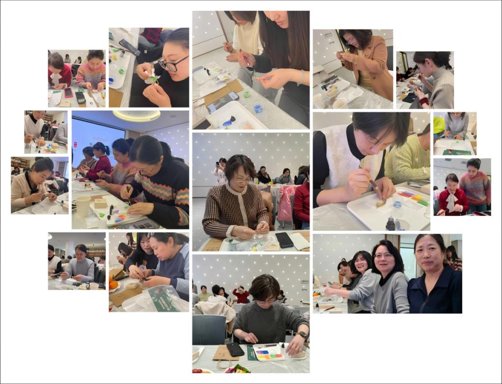 活动现场,学院邀请的专业非遗老师详细讲述了景泰蓝工艺的起源、发展历程以及独特的艺术特色。女教工们围坐聆听,沉浸在这古老技艺的魅力之中。随后的创作环节,女教工们迅速进入状态。点蓝工序对耐心和细心要求极高,女教工们手持工具,专注而小心地将彩釉精准填入底托凹槽,整个过程如同绘制一幅精美的工笔画。大家一边操作,一边交流经验,现场洋溢着温馨、热烈的氛围,在感受非遗魅力的同时,尽情享受手工创作带来的乐趣。