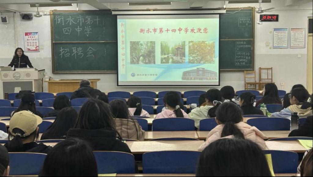 招聘会前,学院领导与用人单位进行了充分的沟通与交流,深入探讨了用人单位对于人才的需求与期望。招聘会上,衡水十四中领导向在场师生介绍了学校概况况、招聘条件、就业岗位及福利待遇等内容,并耐心解答了毕业生们提出的问题。随后,sunbet申搏官网有7名毕业生参加了现场试讲环节,最终有3名毕业生达成了就业意向。