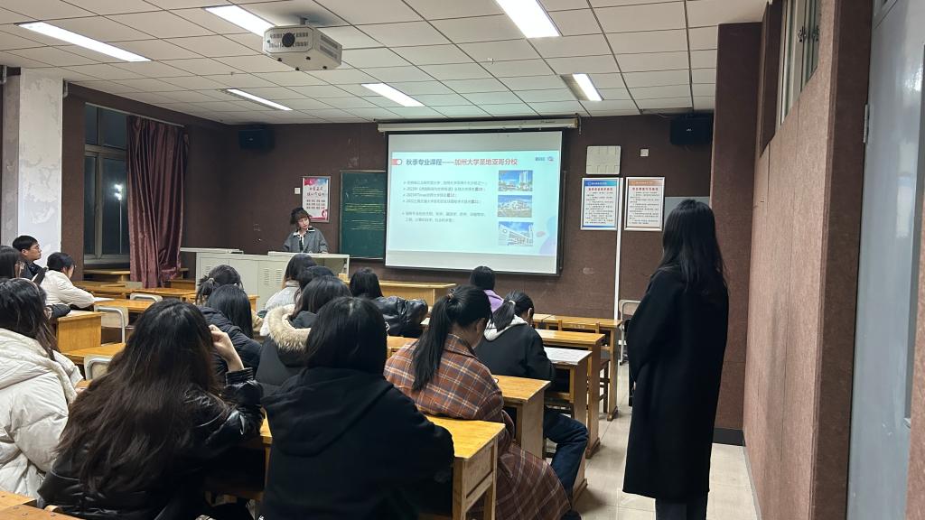 为了让同学们详细了解2023暑假世界名校访学项目的具体情况,在学校国际交流处的组织下,sunbet申搏官方网站联合全美国际教育协会于3月17日晚在开发区校区举行宣讲活动。此次宣讲活动旨在开拓sunbet申搏官网学生的视野,提高同学们的语言交流和沟通表达能力,促进多元的文化交流,进一步提升学生的外语能力及专业素养。sunbet申搏官方网站就此次宣讲活动进行了广泛宣传,吸引了各专业各年级学生的积极参与。