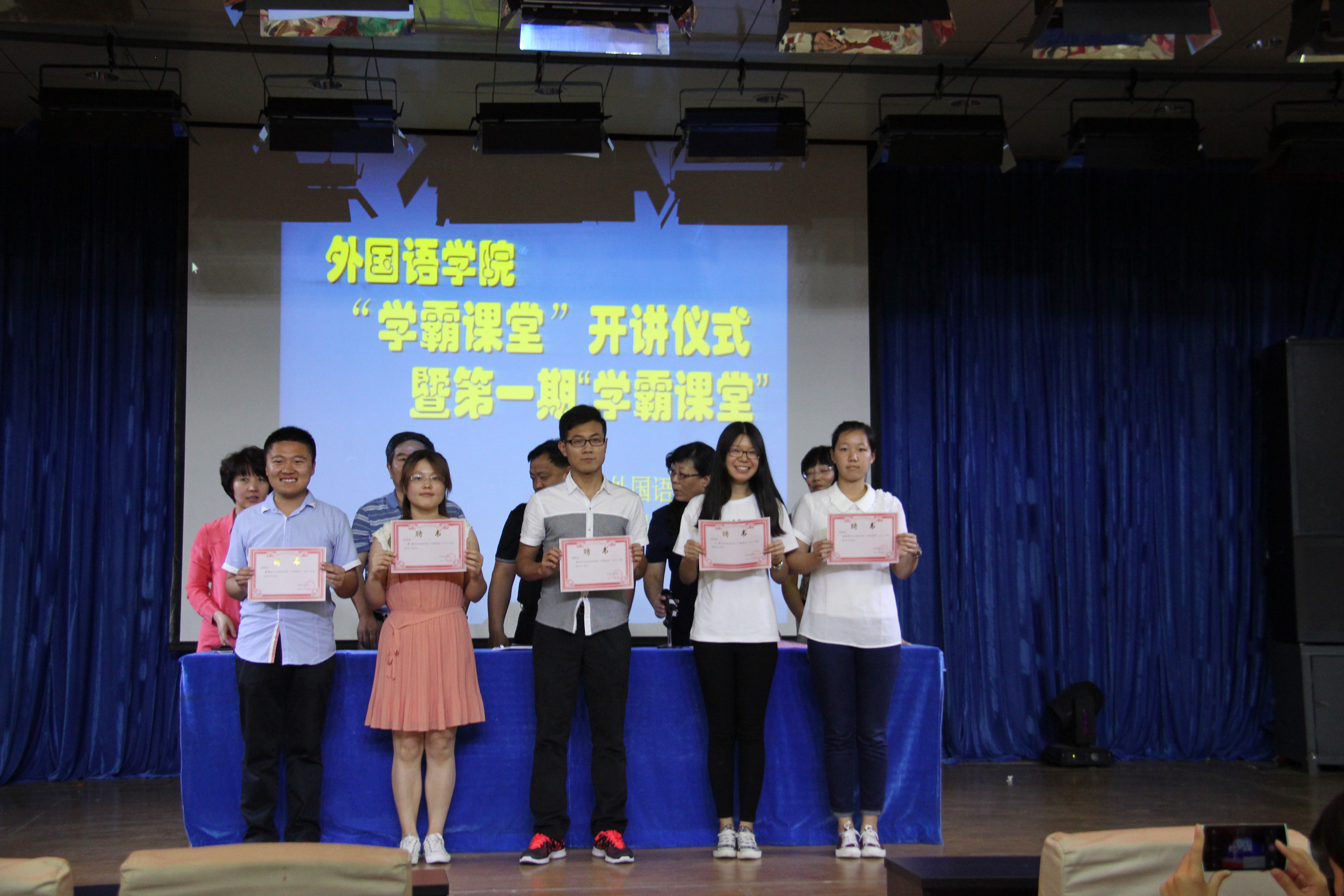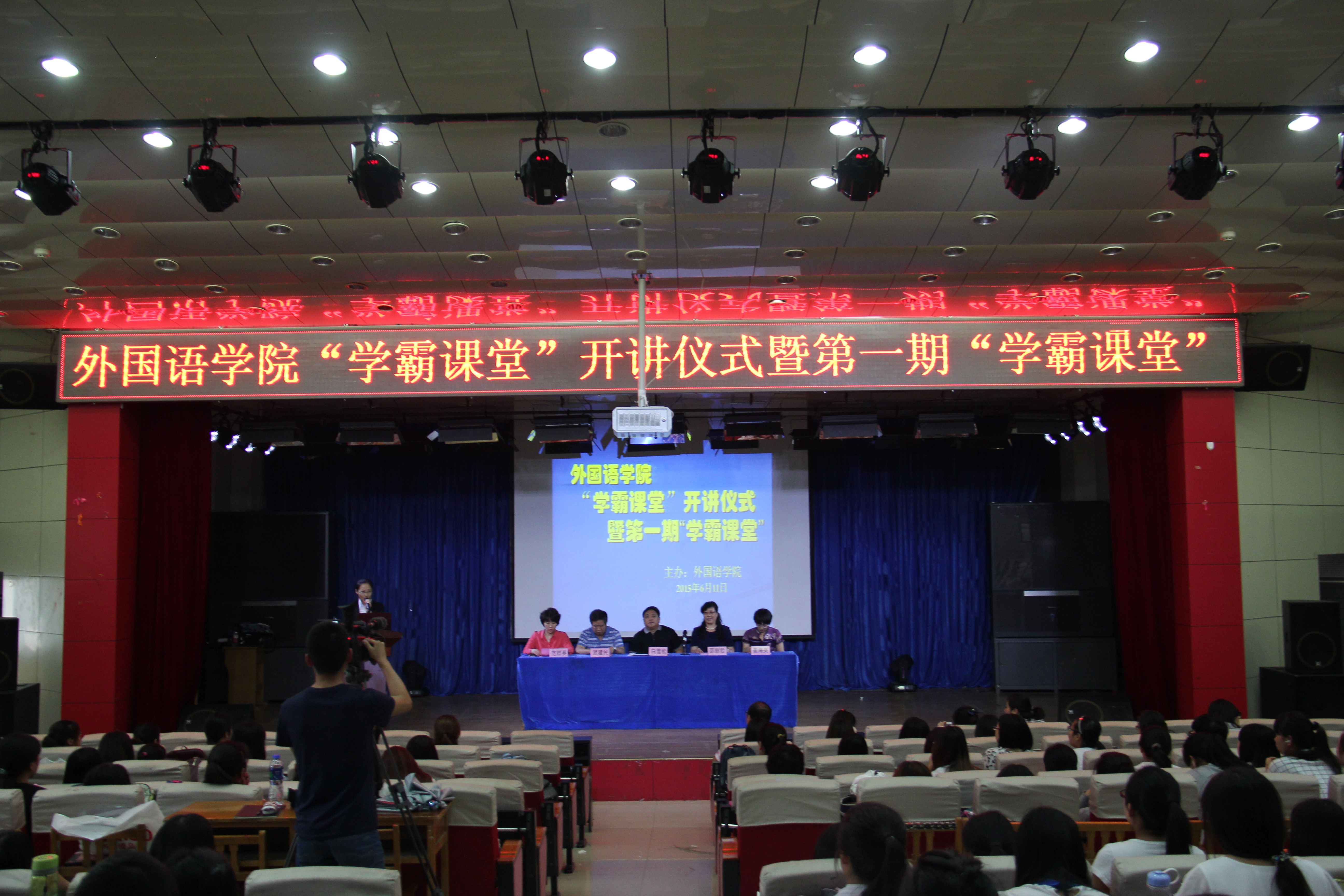 2015年6月11日下午2:30,sunbet申搏官方网站在开发区校区学术报告厅举办了 “学霸课堂”开讲仪式暨第一期学霸课堂活动。sunbet申搏官方网站党委书记白雪松,院长邵丽君,副书记副院长范群英,副院长游建民,副院长崔海英出席了此次活动。学院200多名学生参加了“学霸课堂”活动。