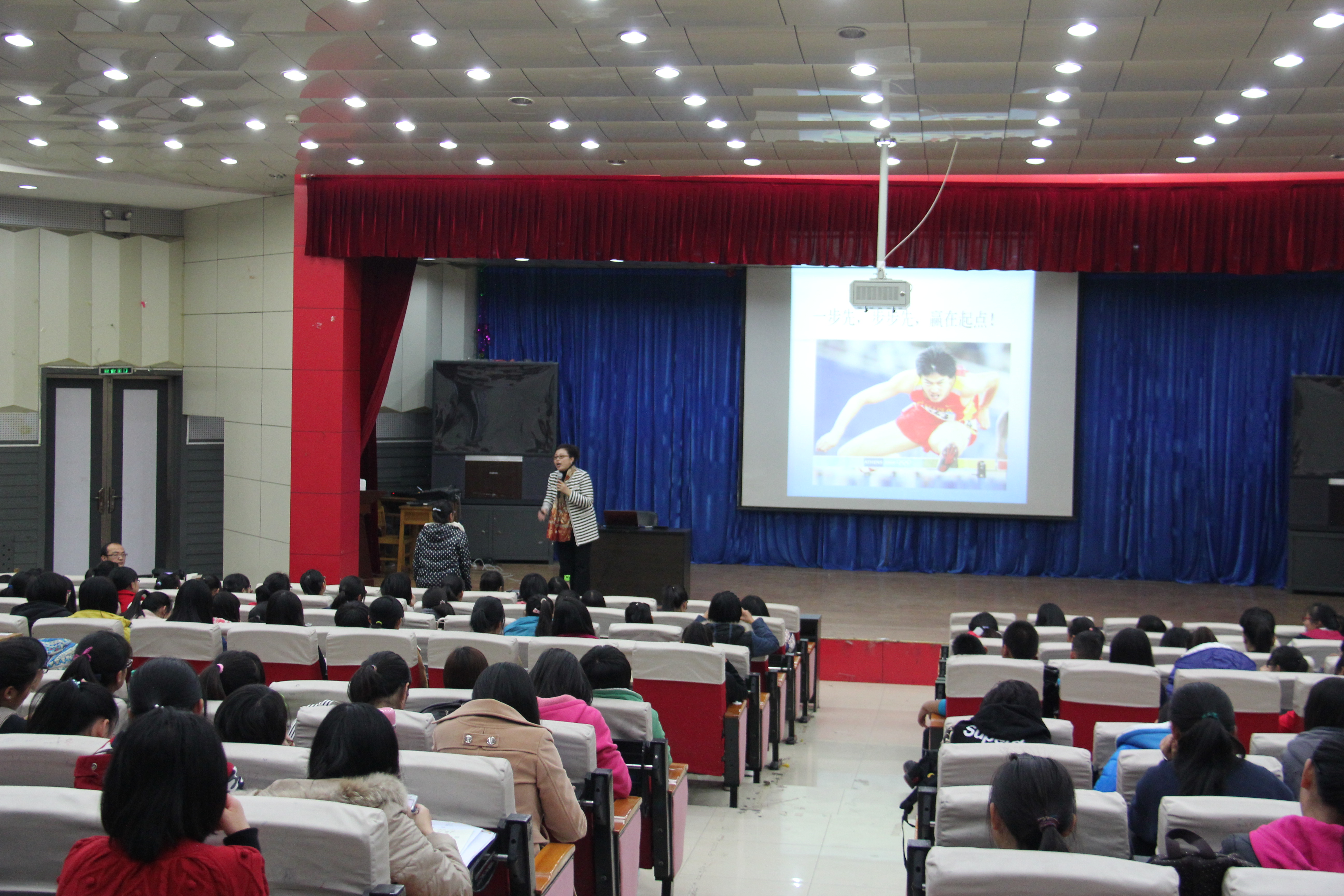 2014年11月4日晚7点,sunbet申搏官方网站在综合楼二楼报告厅成功举办了“大学生活,从心开始”的心理讲座。主讲人为学校心理咨询中心的丁书新老师,学工办老师和300多名大一新生到场聆听讲座。