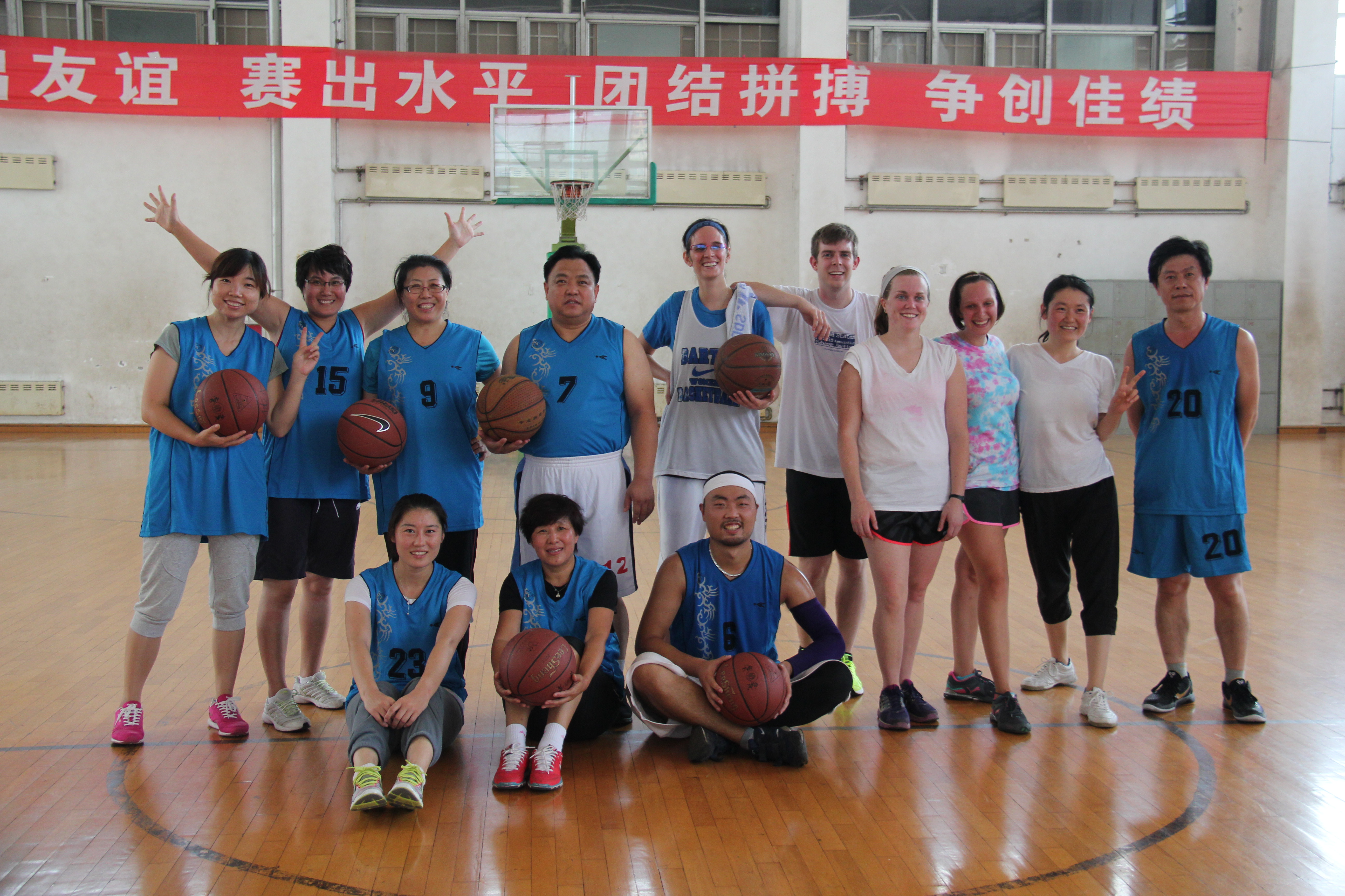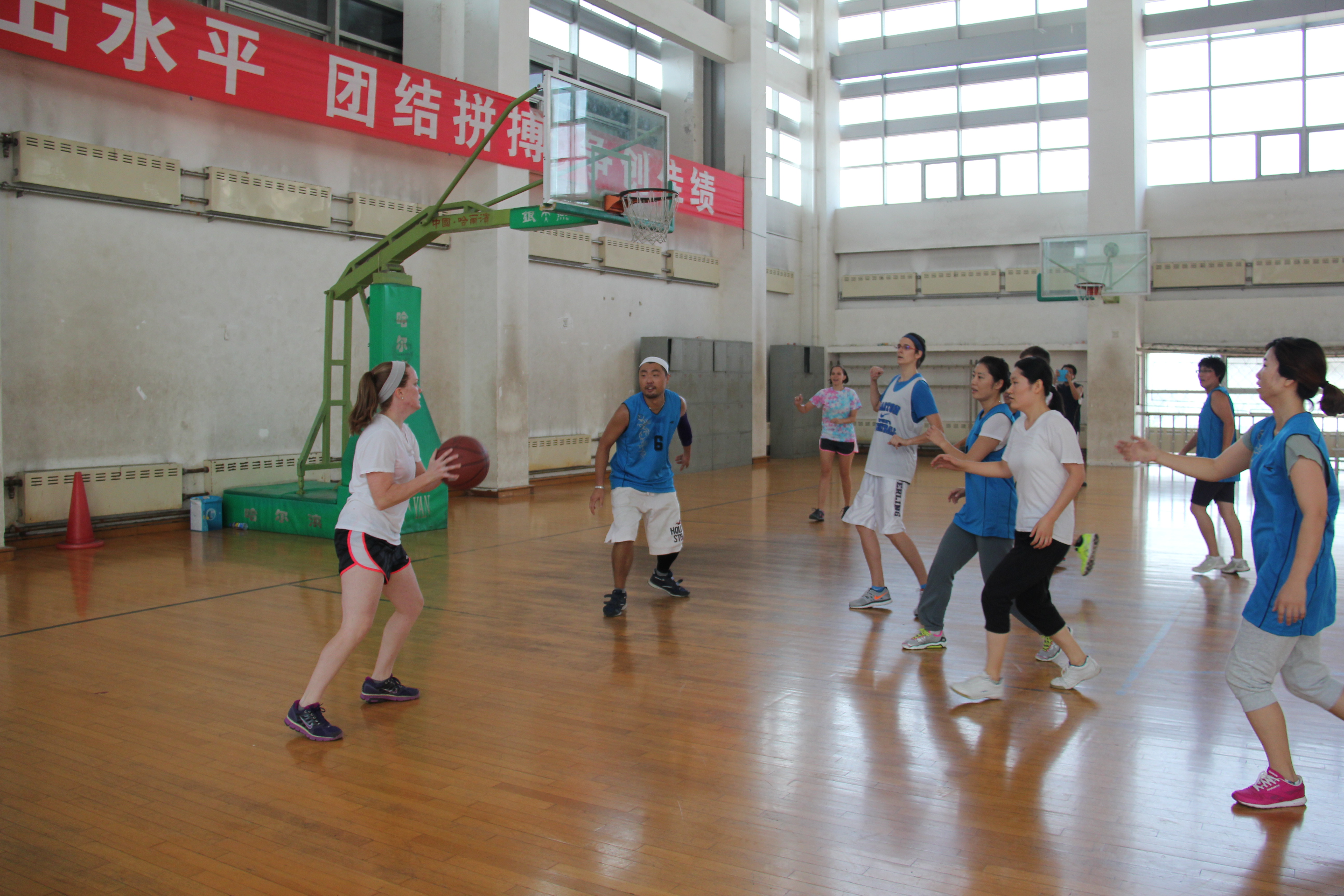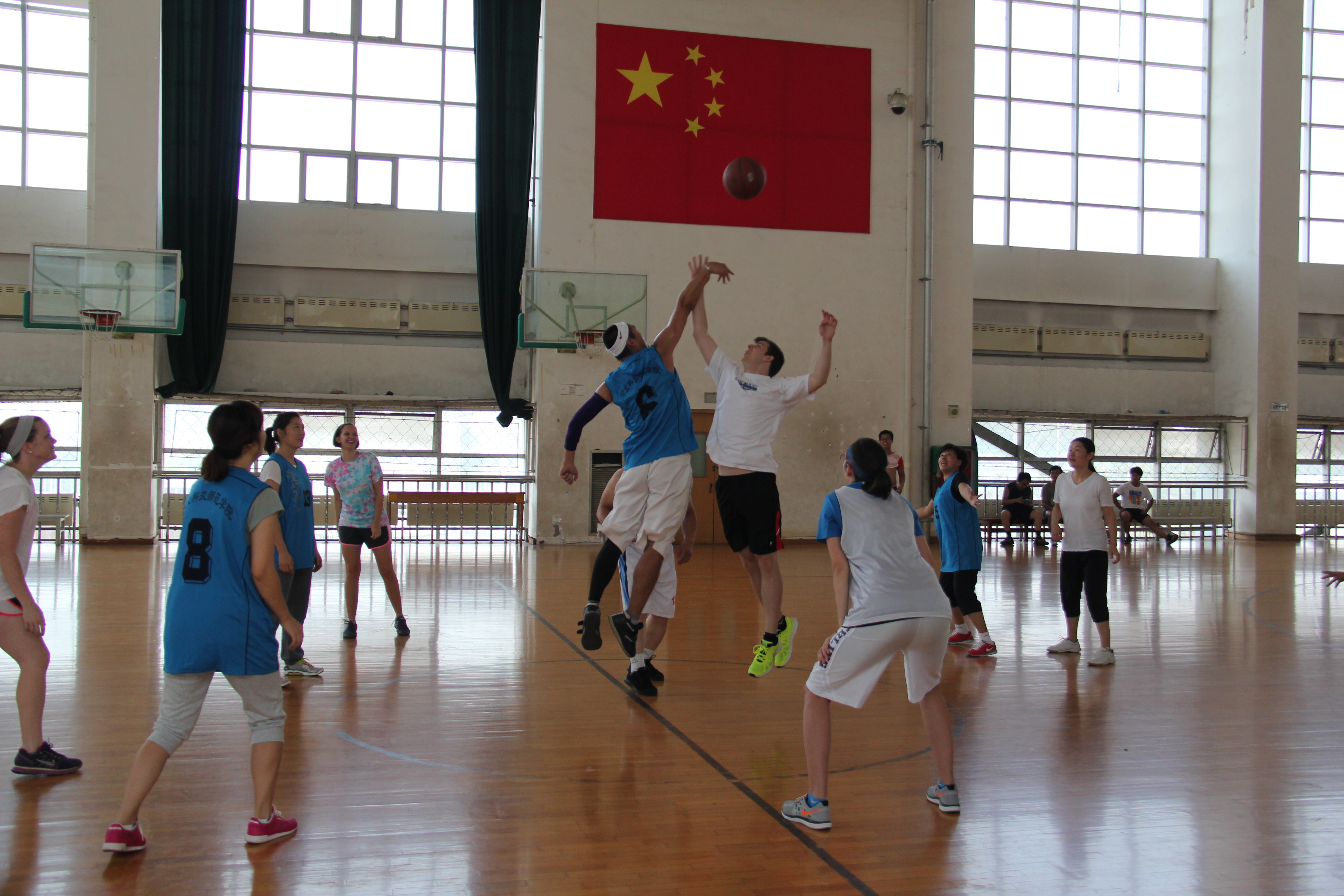 9月13日上午,国际合作与交流处与sunbet申搏官方网站联合举办了中外教师篮球友谊赛。国际合作与交流处处长东方阳、学生处副处长宋文华、sunbet申搏官方网站党委书记白雪松、sunbet申搏官方网站院长邵丽君、四名英语外教及多名教师参加了比赛。