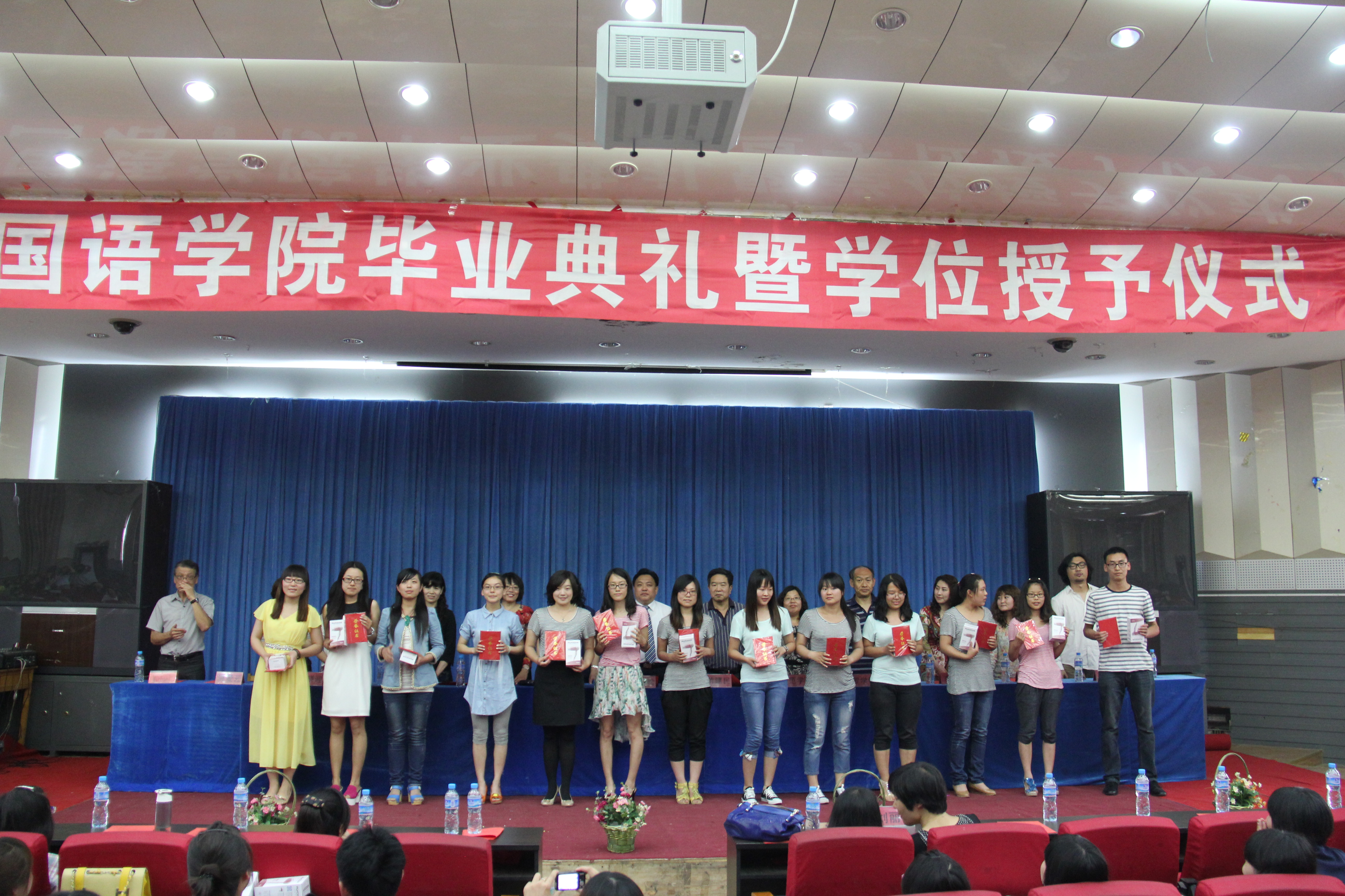 典礼上,邵丽君院长致开幕词,介绍了2013届毕业生的基本情况,并对本届毕业生中考取研究生、参加西部计划以及专接本上线情况进行了简单介绍。旅游英语教学部主任罗学峰老师代表全院教师发言,鼓励大家学无止境,终身学习。2010级旅游英语专科专业学生吴立川同学和2011级英语本科专业郝小乐同学分别代表全体毕业生和在校生发言;之后,白雪松书记在典礼上作了激情洋溢的讲话。他充分肯定了毕业生们为学院发展所作的成绩,对即将毕业的同学们提出了殷切的希望和衷心的祝福。