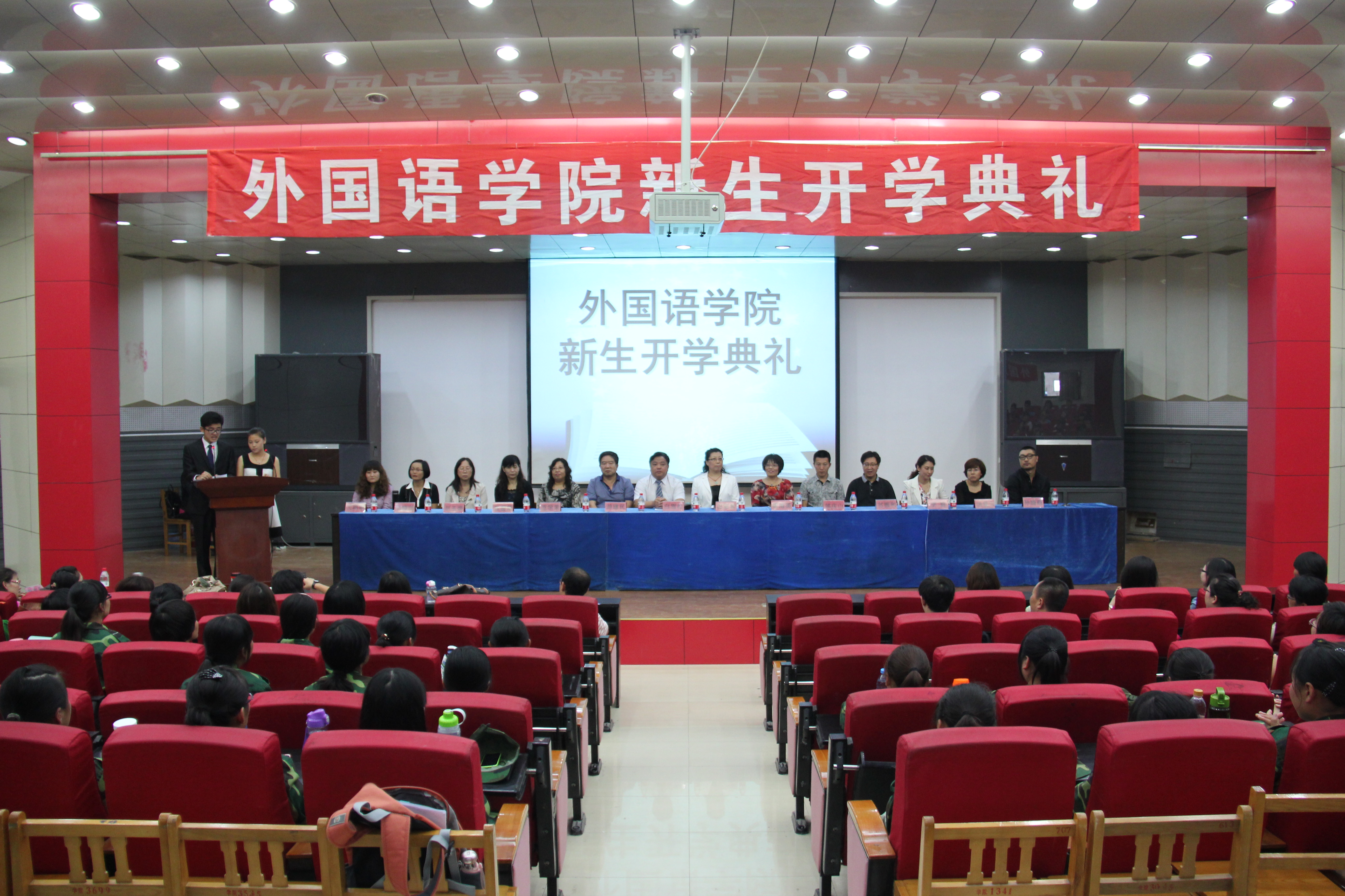 9月12日下午,sunbet申搏官方网站在开发区学术报告厅为全体2013级267名新生举行庄严的开学典礼。学院党政领导、全体教师以及2013级全体新生齐聚典礼。开学典礼现场突显sunbet申搏官方网站特色,除了现场悬挂英语、意大利语、日语等语言的欢迎条幅营造氛围以外,还采用了汉英双语主持。