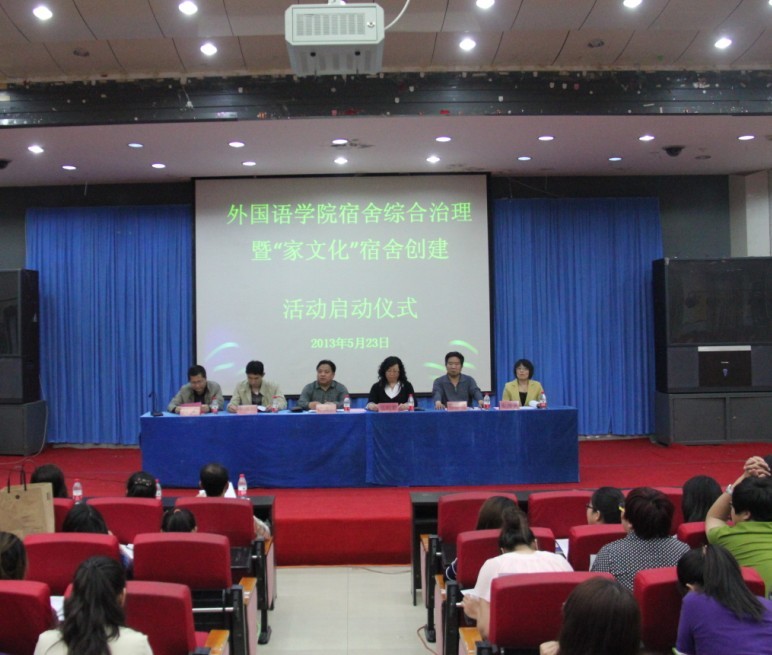 2013年5月23日下午,sunbet申搏官方网站宿舍综合治理及信息管理工作暨“家文化”星级宿舍创建启动仪式在开发区校区学术报告厅成功举行。出席此次会议的有校党委学工部副部长、校团委书记于海印老师;学生处教育管理三科科长周雷老师;sunbet申搏官方网站党委书记白雪松、院长邵丽君、副院长游建民、副院长崔海英老师;sunbet申搏官方网站学工办、团委老师及全体辅导员、班主任老师;2011级、2012级全体学生及2009级、2010级各班宿舍长、学生党员、学生干部共600多人参加了此次活动。