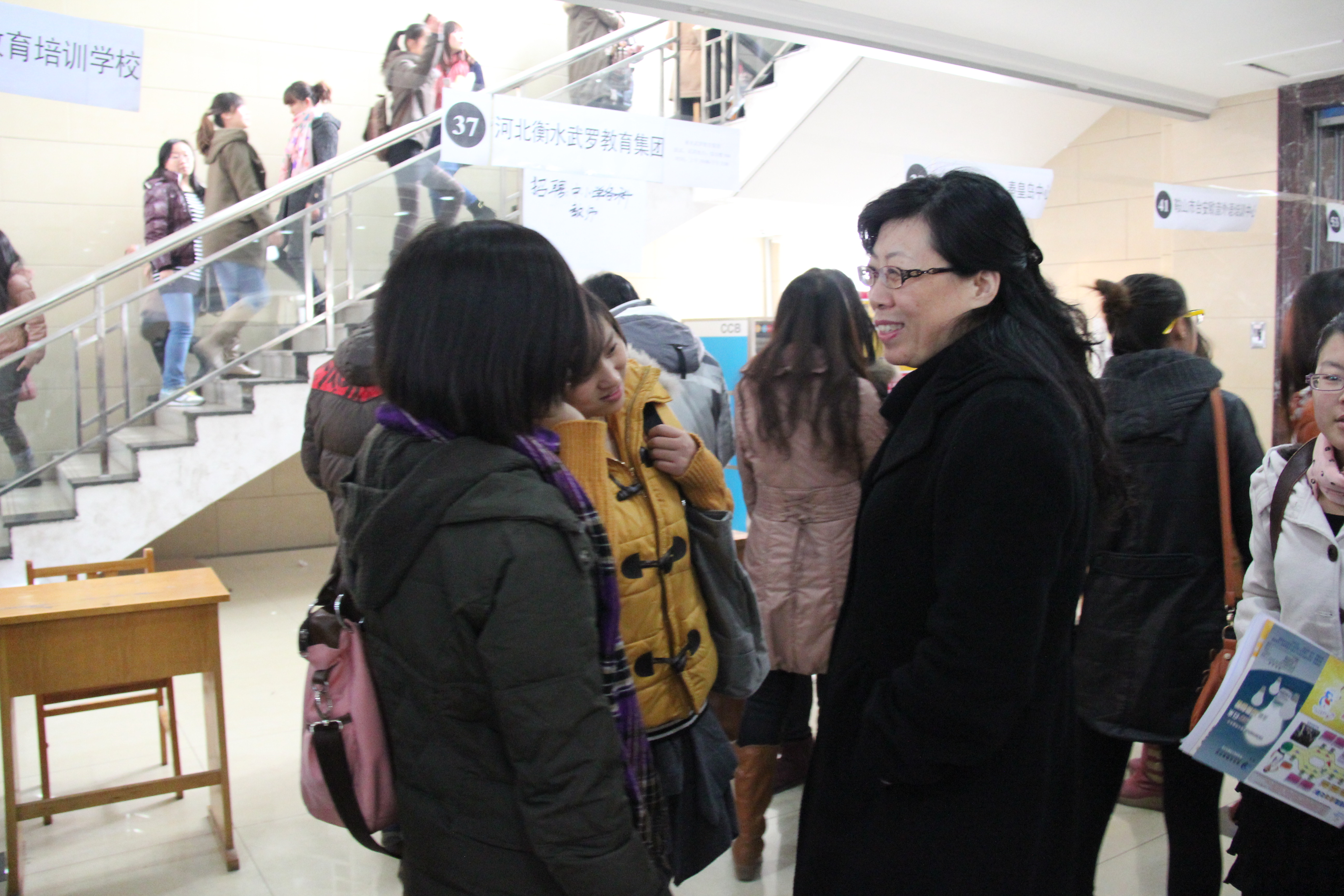在招聘会前期工作中,学院领导高度重视、亲自部署,学工办各人员倾力执行、其他部门和教研室鼎力配合。从10月份以来,学工办积极和相关用人单位进行走访洽谈,利用毕业生资源开拓新的用人市场,力求为学生“搭建”一条成功就业的“桥梁”。招聘会邀请了北京摩凯先锋教育咨询有限公司、上海交大昂立国际教育天津静海分校、瑞思学科英语(秦皇岛)中心等20余家单位参会。
