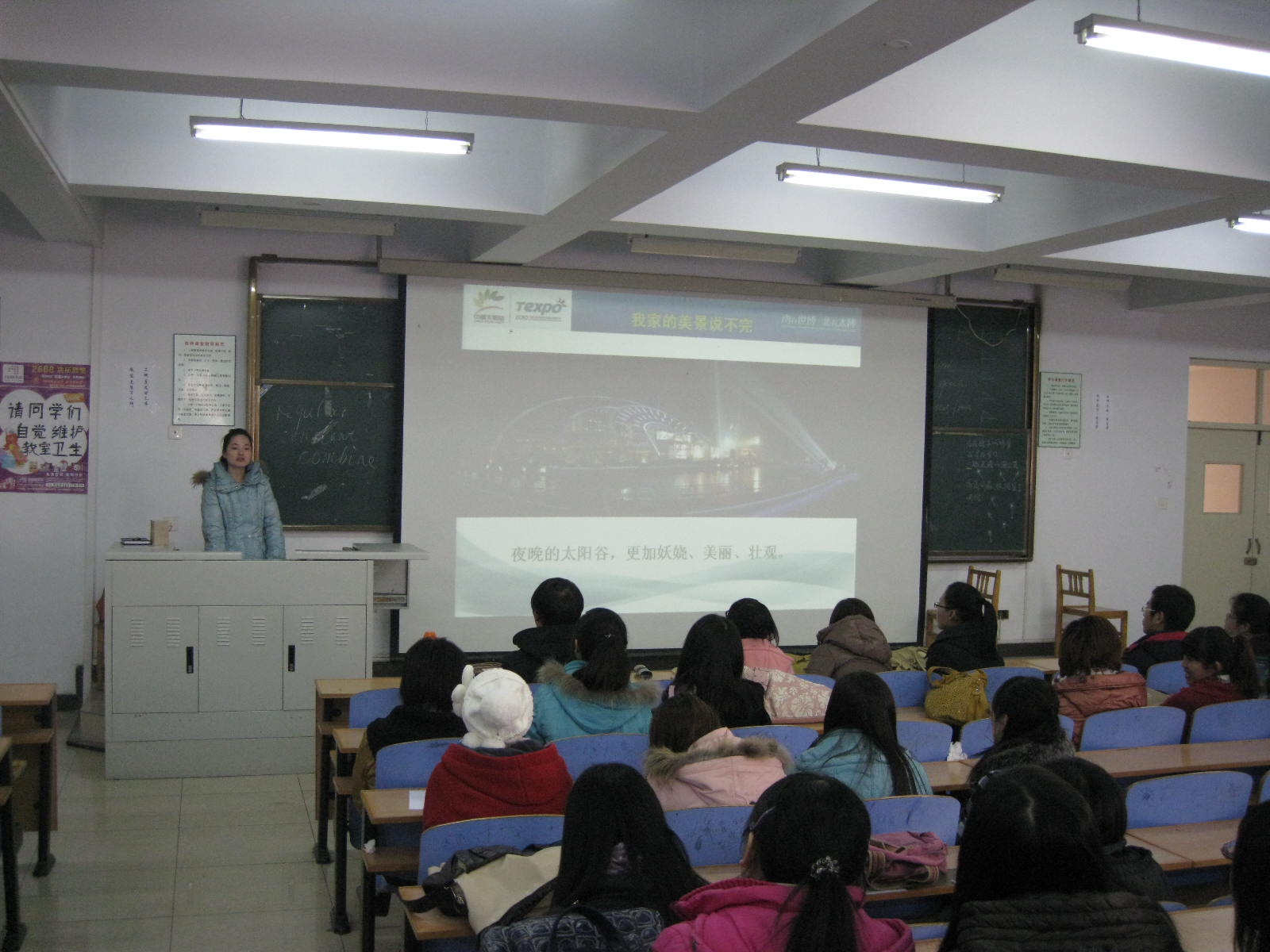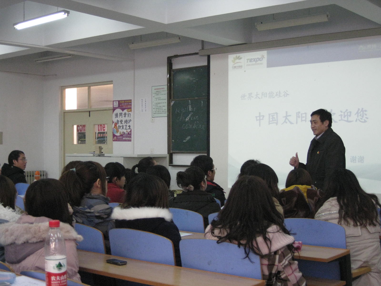 首先,皇明太阳能股份公司的招聘代表佟女士为毕业生播放皇明太阳能“太阳谷”的宣传片,之后将皇明太阳能股份有限公司的公司规模、产品研发、产业布局、发展前景、招聘岗位、基本待遇等情况向毕业生做了较为详细的讲解,并诚挚的邀请sunbet申搏官方网站的学生加入皇明,同时也欢迎大家有机会去皇明公司参观考察和实习。讲解后,刘朝晖书记代表学院欢迎皇明太阳能股份有限公司佟女士一行,并谈到自己去皇明公司考察的经历,要求全体毕业生转变观念,面向市场。通过对行业和企业的分析,鼓励大家去皇明太阳能实习就业。