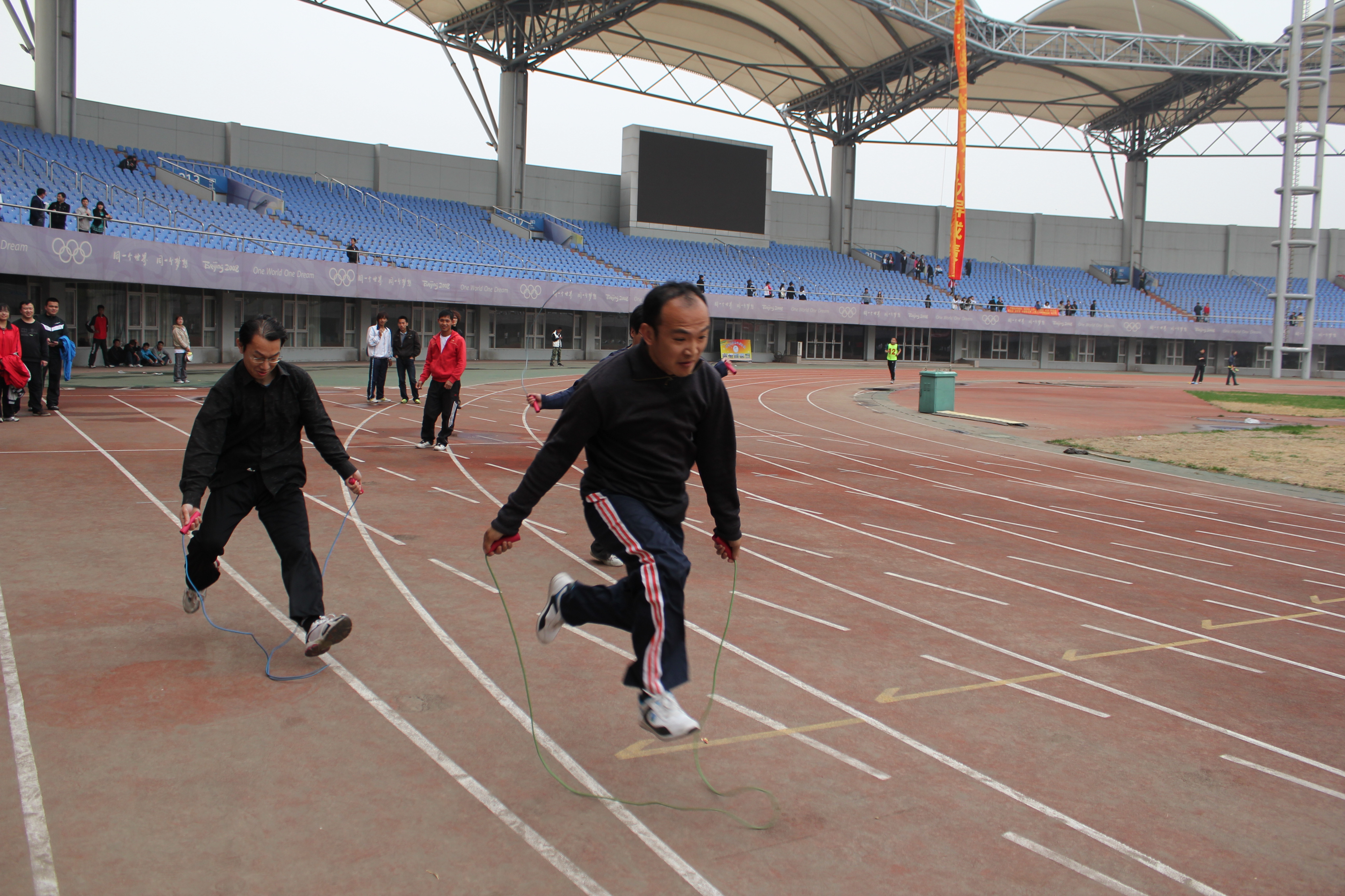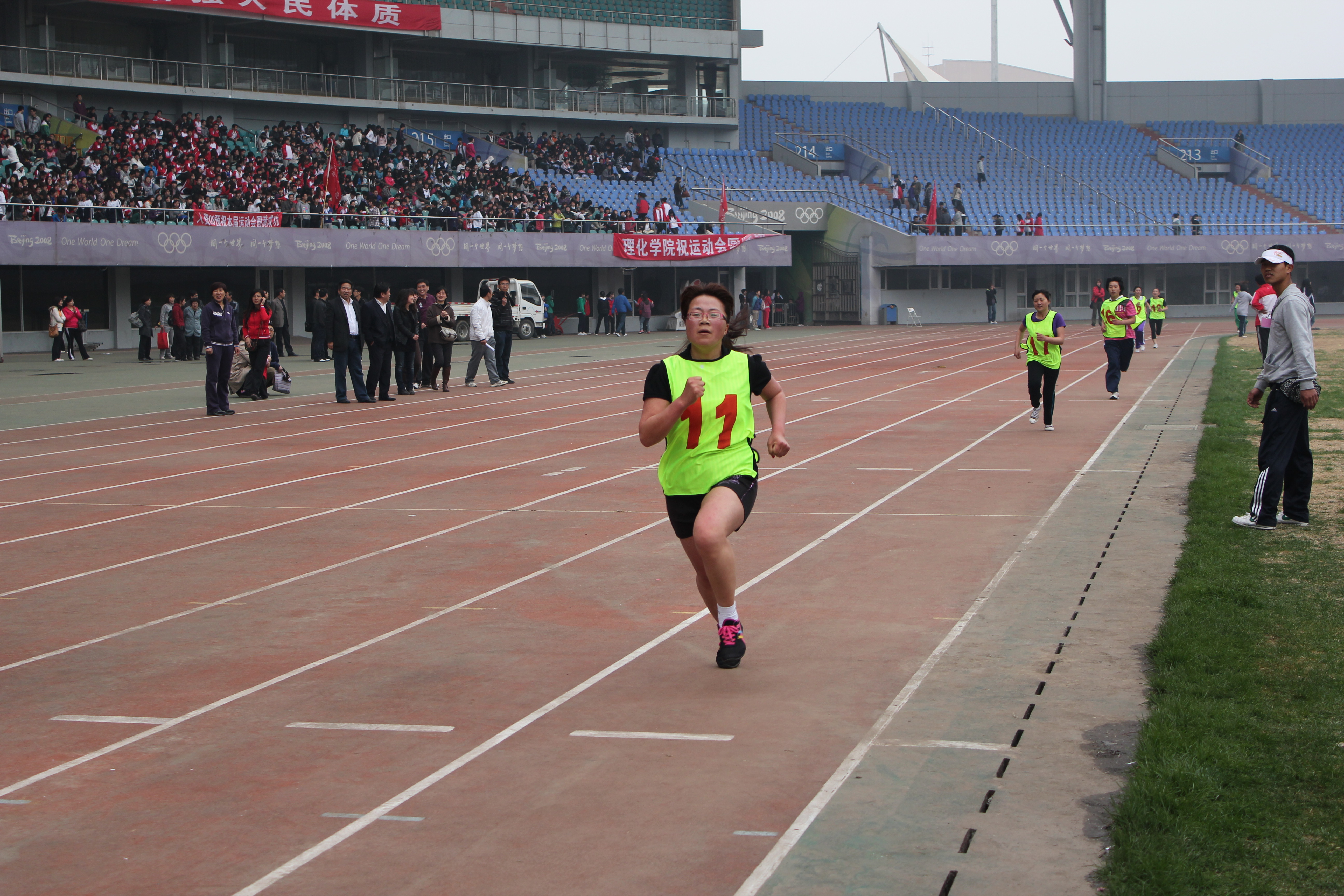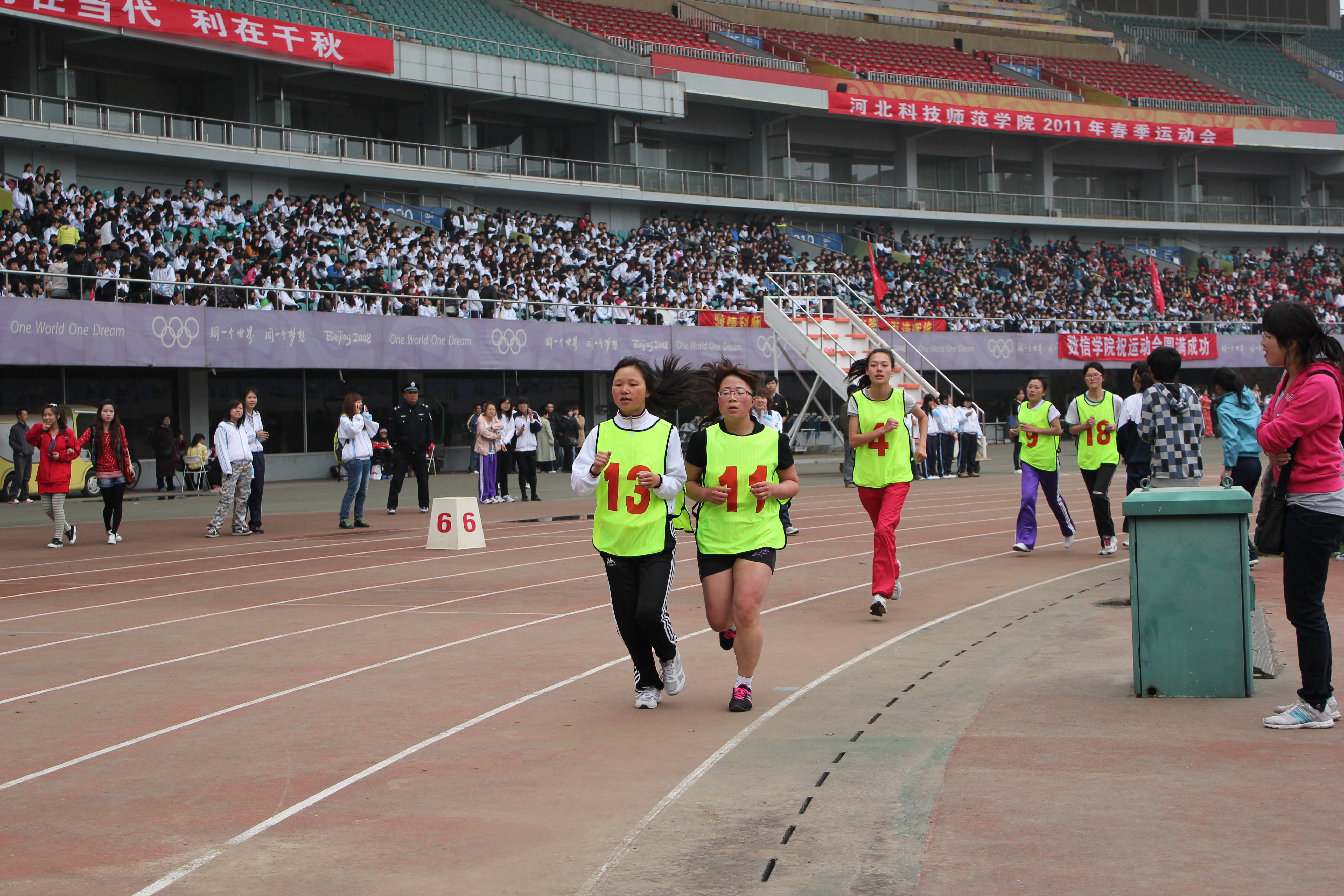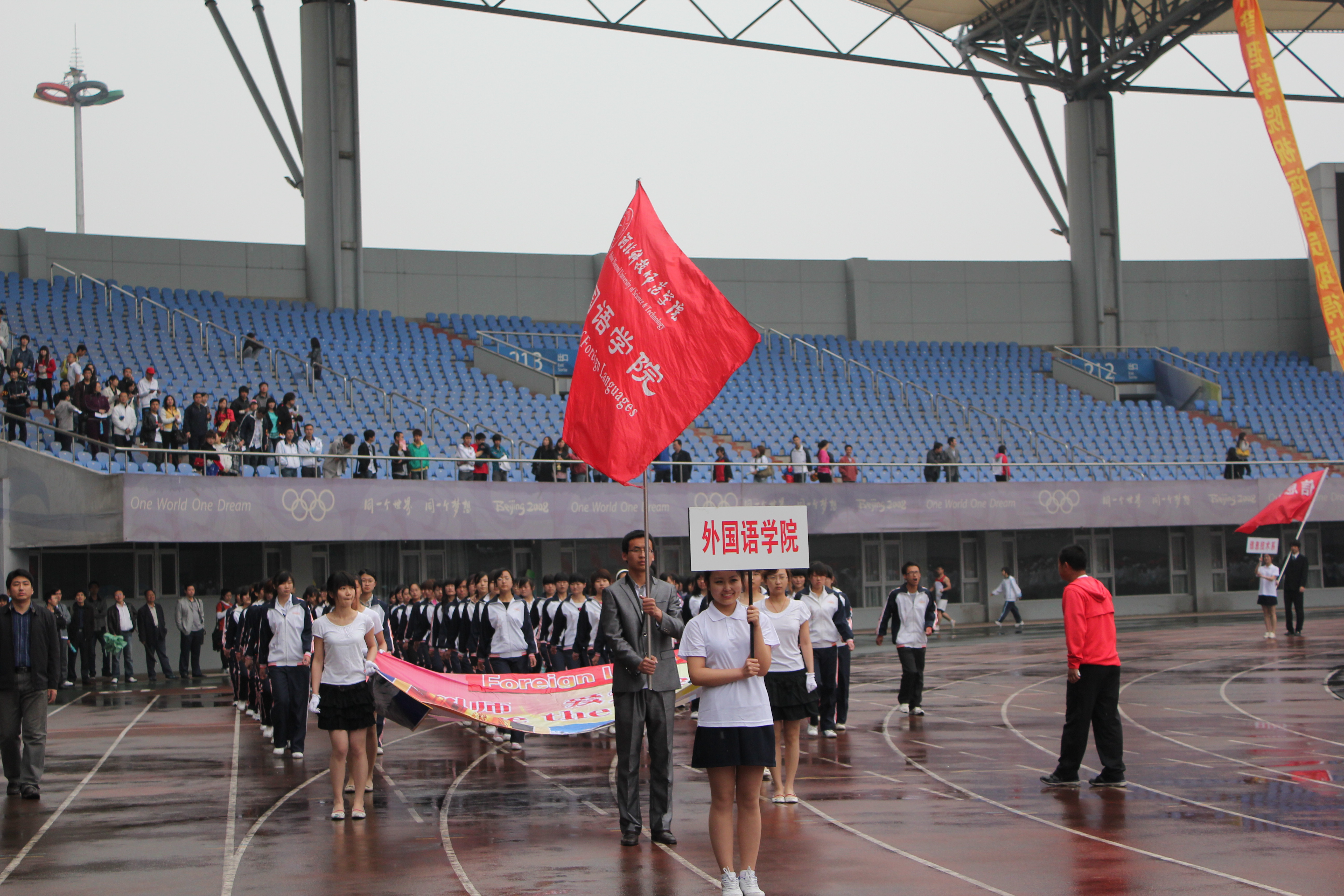 2011年5月5日至6日,sunbet申搏官网秦皇岛校区2011年春季田径运动会在奥体中心体育馆隆重举行。由sunbet申搏官网700余名学生参与表演的团体太极拳成为开幕式的重头戏,受到与会领导及师生们的好评。运动会上sunbet申搏官网健儿们努力拼搏勇创佳绩,一举夺得了团体总分第七名的好成绩。其中10级意大利语的张雪召同学获得男子三项全能第一名的好成绩,10级旅游英语的吴立川获得男子标枪第二名,10级旅游英语的贾丹丹获得女子1500米第三名的好成绩。学生们力争上游,教工们也不落后。sunbet申搏官网教师在教工男子4×100接力赛中勇夺第二名,刷新了sunbet申搏官网在此项赛事中新的记录。另有多名女教师在各项比赛中获奖。