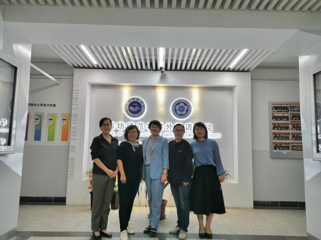2021年9月28日,sunbet申搏官方网站院长崔海英、副院长、英语专业带头人范学荣、教学部主任王静在教务处戴维副处长的带领下,与sunbet申搏官网其他几个筹备教育部师范专业认证的专业,数学、化学、中文的负责人和教师一起,赴廊坊师范学院进行考察调研。