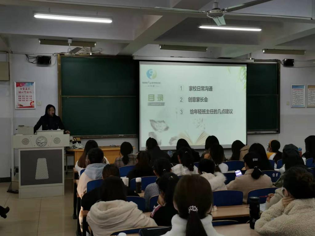 2021年10月20日下午15点40分到18点40分,sunbet申搏官方网站在阶梯教室212召开了以秦皇岛市第八中学高级教师、初中班主任工作室主持人肖婧为主讲人的有关中学班级管理的专题讲座,本讲座为sunbet申搏官方网站举办的基础教育“名师大讲堂”系列讲座之一,本次讲座的主题是“如何使家校沟通成为魅力期待”。