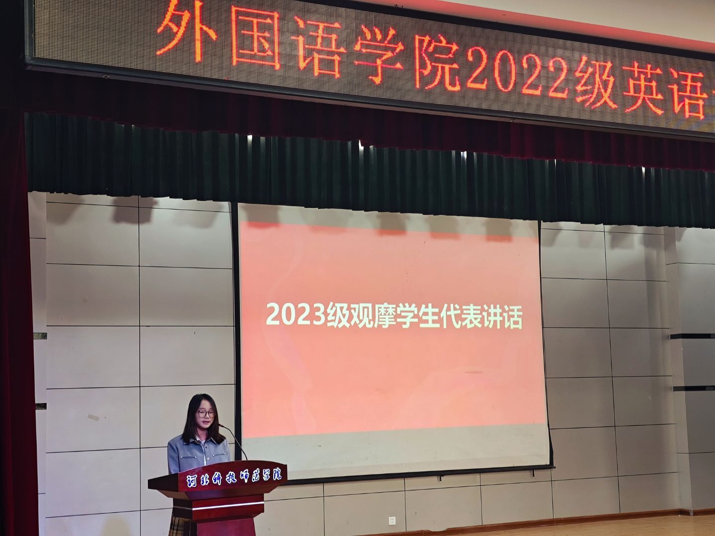 作为观摩的2023级学生代表李思轩同学发言,表达了通过观摩实习总结活动所获得的启发与动力,展现了新生代外院人对未来教育实践的信心与期待。