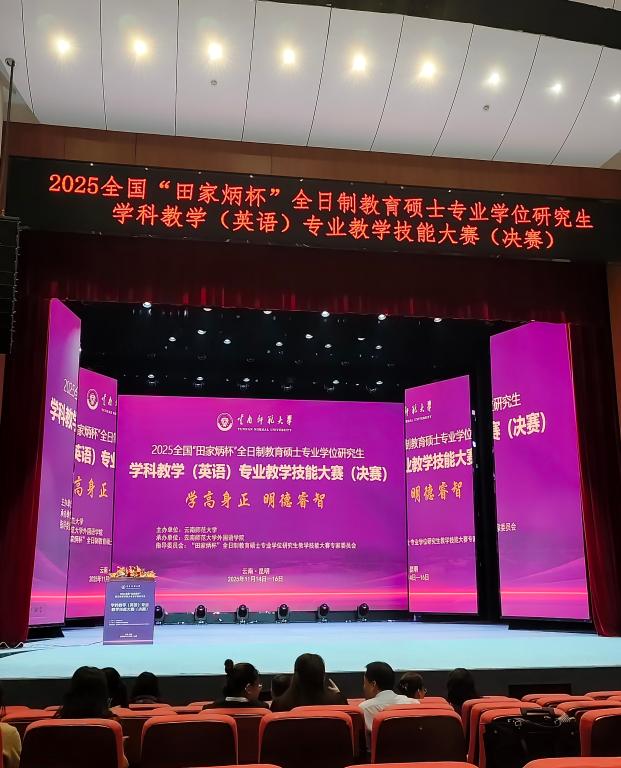 本次大赛由田家炳基金会主办、云南师范大学承办,不仅为全国教育硕士培养单位搭建了一个高水平的竞技与交流平台,更通过赛事与研讨的深度融合,有效推动了学科教学(英语)在数字化时代的理论创新与实践发展,对促进教师专业成长、深化教育教学改革具有重要意义。(编辑:王小琳 校对:范学荣 审核:崔海英)