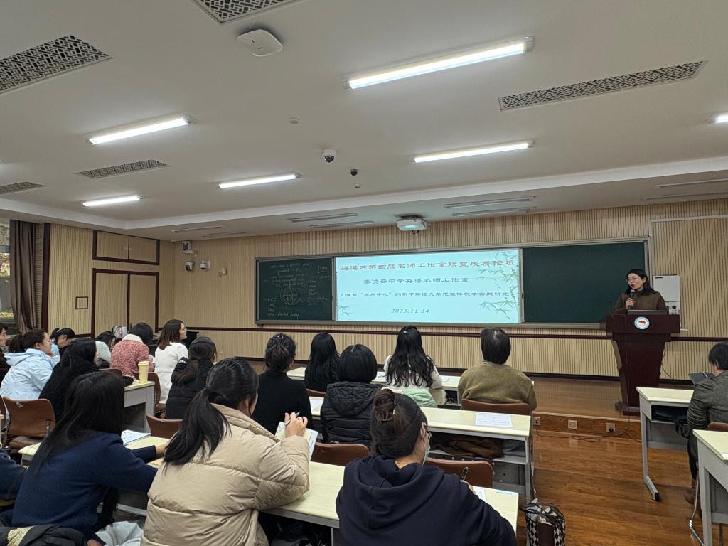 2025 年 11 月 24 日,秦皇岛市海港区第四届名师工作室联盟成果论坛暨 “秦凌云初中英语名师工作室” 教研活动顺利举办,sunbet申搏官方网站 2024 级、2025 级学科教学(英语)硕士研究生及部分任课教师受邀参与,与海港区初中英语一线教师齐聚一堂,共同探索 “AI 赋能‘学为中心’的初中英语大单元整体教学实践” 新路径。