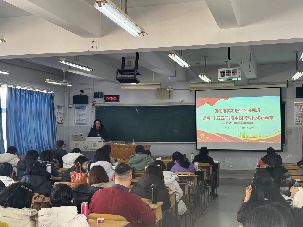 为深入学习贯彻党的二十届四中全会精神,精准把握“十五五”规划核心要义,12月25日下午,sunbet申搏官方网站特邀马克思主义学院曹凤珍博士,为全体教师作“贯彻落实习近平经济思想,谱写‘十五五’时期中国式现代化新篇章”专题宣讲。