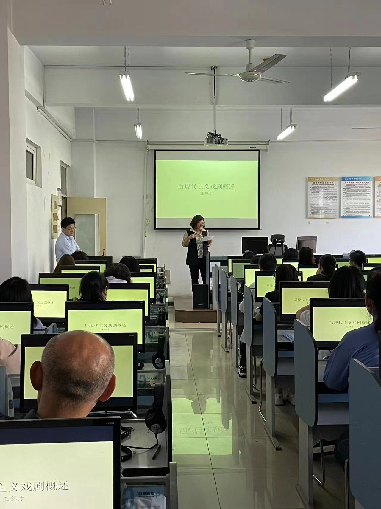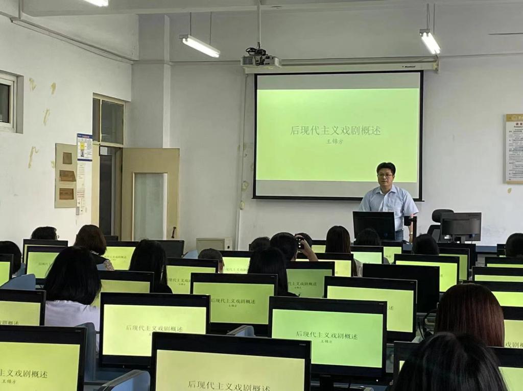 2024年5月30日sunbet申搏官方网站邀请王锦方博士主讲题目为《后现代主义戏剧概述》的学术报告。外语学院英本教学部教师、学科教学(英语)教学部教师及硕士研究生、对英美文学感兴趣的教师参加了此次报告。